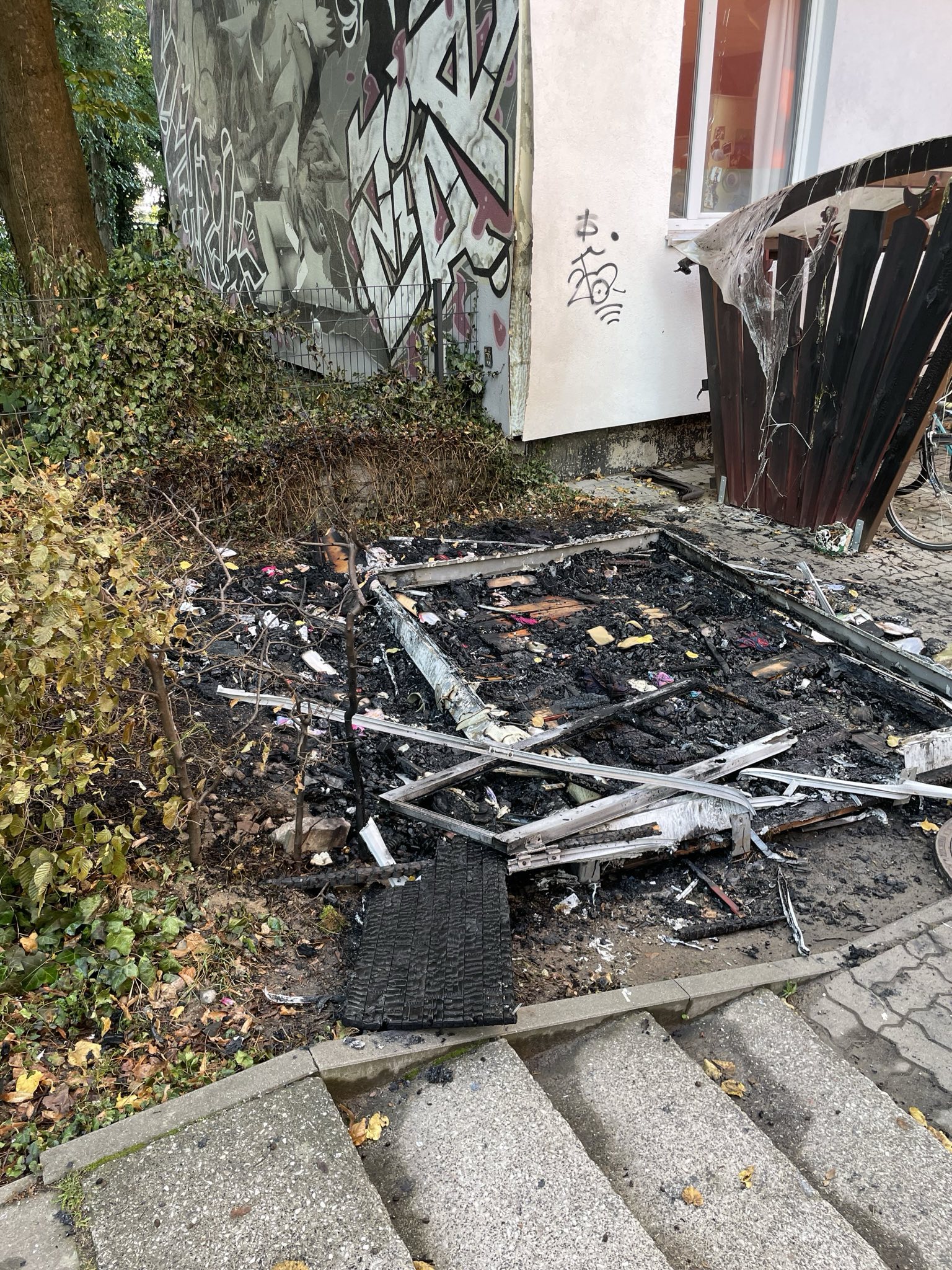 In der Nacht vom 8. auf den 9. Oktober 2025 wurde unser Nachbarschaftsregal in Brand gesetzt. Es ist niedergebrannt und das Feuer hat auch die Fassade der FRIEDA 23 beschädigt. Glücklicherweise wurde niemand verletzt und keines der benachbarten Gebäude fing Feuer. Natürlich haben wir Anzeige erstattet.